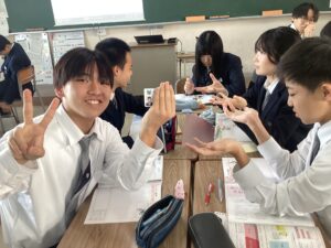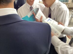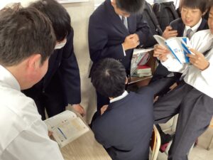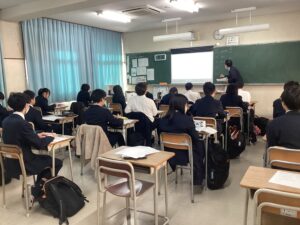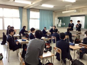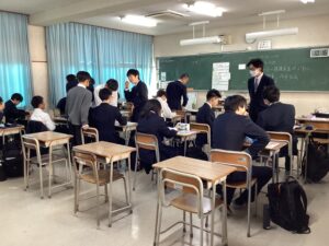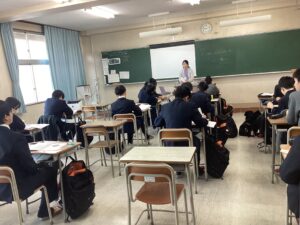 今日のLHRは、キャリア教育です。中2で岡山県内の企業を調べて見学ツアーに参加しました。中3では関西地域の企業に範囲を広げて企業調べをします。