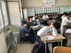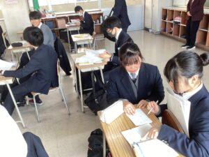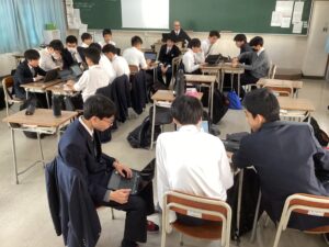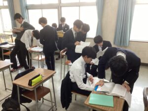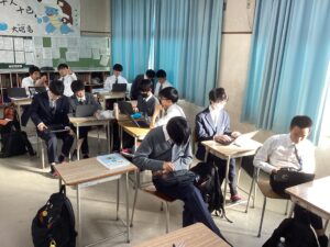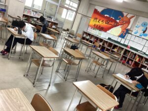 今日は、期末考査3日めで、国語Iと数学αの試験が行われました。写真は試験前の様子です。明日は、考査最終日です。頑張った成果が出ると良いですね。