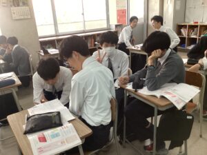 今日の総合もプレゼンテーションの準備をしました。より効果的な見せ方を考えて資料を作成をしました。次はリハーサルなので、本番での発表と同じ7分に原稿を仕上げました。放課後講座は、難関は数学、東医は英語の発展講座を行いました。