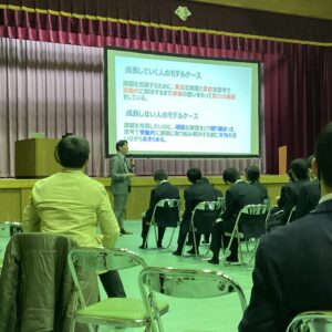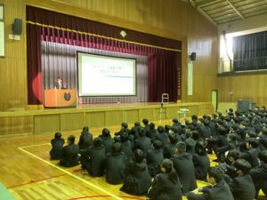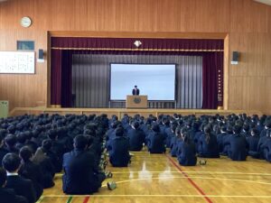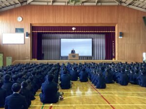 今朝のMスタは土曜日に行われた進路講演会の振り返りでした。今回の講演会の内容がこれからの学習の意欲に繋がればと思います。