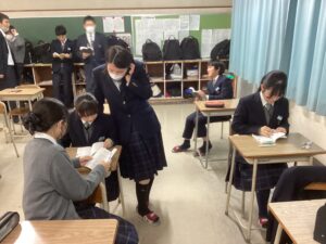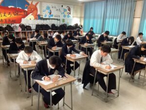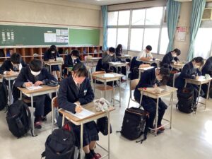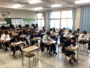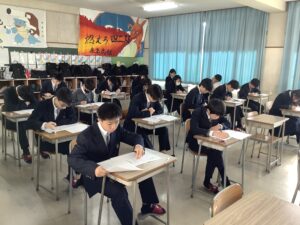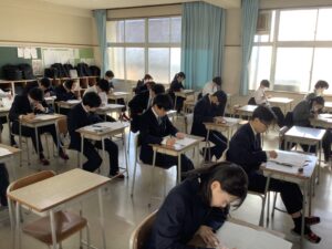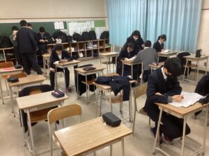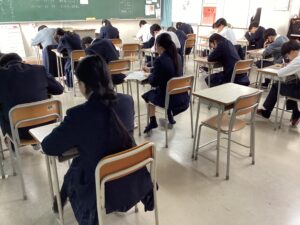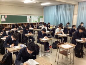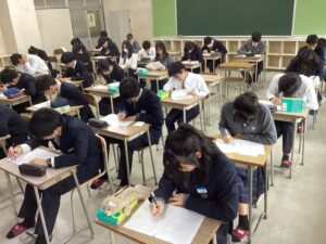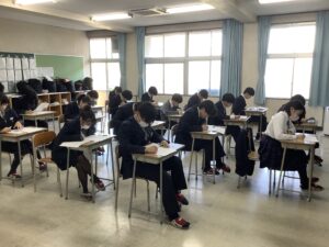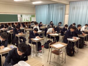 今日は課題考査。現在は5時間目の社会に取り組んでいます。冬休みの努力が結果に直結するテストです。二者面談を経て、様々な人の期待を背負っている彼らが、どれほど素直に感謝の気持ちを持って努力をしたのか、結果が待ち遠しく思います。