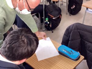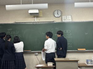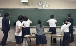数学の先生にヒントをもらいながら、各々のアプローチ方法で、ああでもないこうでもないと悩みながら問題と向き合う姿がなんだか楽しそうで、素敵だったので写真を撮らせてもらいました!