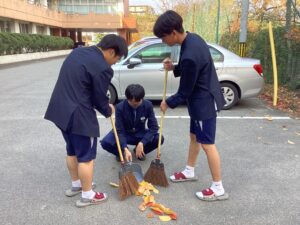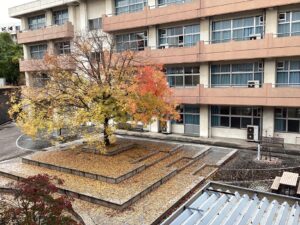 紅葉は見るにはいいですが、昇降口前の昼清掃は10月からずっと落ち葉に悩まされています。掃いてもきりがありません。あともう少しで解放されます。がんばろう。