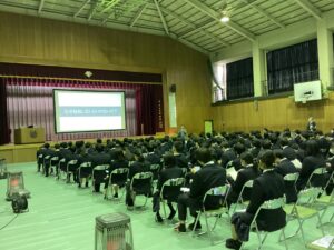 本日の4時間目は、中2、中3対象で、進路講演会が開催されました。講師には富士学院学院長の村田慎一先生をお招きしました。