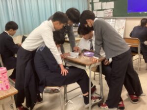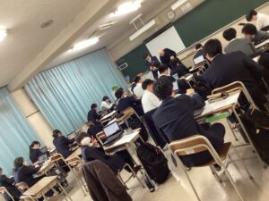 画像は2時間目の講習中の様子ですが、その真剣な背中を見ていると、この1年でぐっとたくましくなった彼らの成長を改めて感じ、私たち教職員も身が引き締まる思いです。