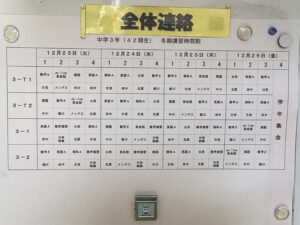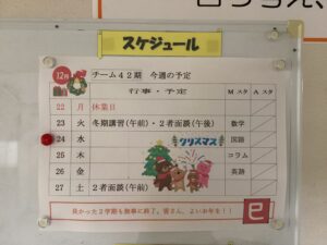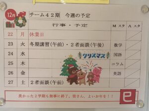 カレンダーもいよいよ最後の一枚となりました。本日12月24日はクリスマスイブですが、学校では朝から冬期講習がスタートしています。