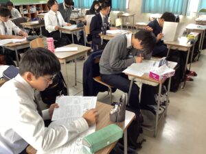 本日11月12日(水)は、9時20分より国語、英語、数学の順番で校内実力考査を実施いたしました。