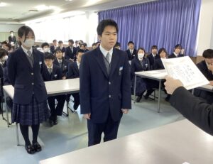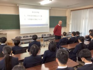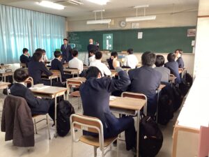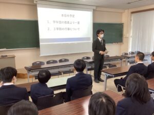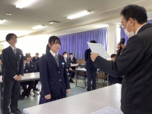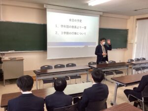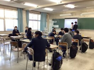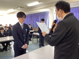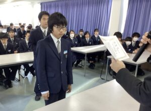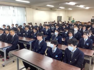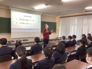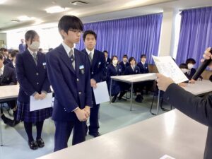 本日で冬期講習が終わり、いよいよ冬休みに突入です。4限は学年集会で締めくくりです。Mスタやボキャコン、ことば王の表彰を行いました。その後は生徒部から学校生活や冬休みの過ごし方について、最後は学年主任から高校生になるにあたっての話をいただきました。
