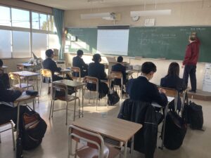 その中でも、本当の初授業にあたる各クラス1時間目の授業の様子を写真に収めました。1組:国語I 2組:数学β T1組:数学α T2組:英語A で、どのクラスも集中して授業に臨んでいました。だんだん冬休みモードから学校モードに生活リズムを整えてくれている様子が伝わります。またいきなり連休に入りますが、リズムを崩さず、充実した連休にして欲しいと思います。