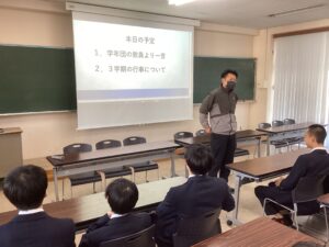 中学生活最後の大きなスポーツ行事となるマラソン大会。学習面での追い込みはもちろん大切ですが、仲間と共に走る経験も、彼らにとってかけがえのない思い出になるはずです。2月14日(土)の本番に向け、体調管理に気をつけて、全員で無事に駆け抜けてほしいと、学年団教員一同願っております。