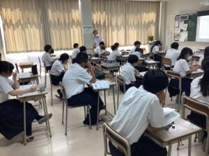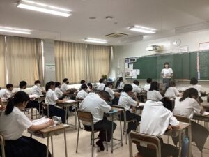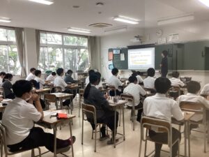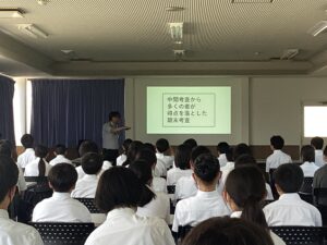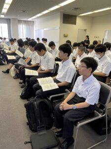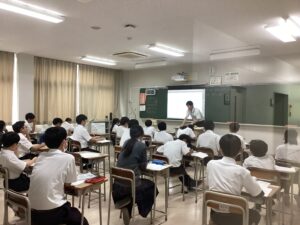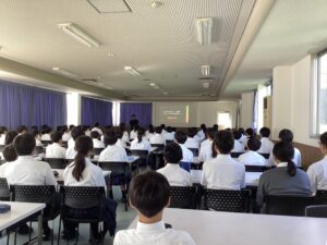 ほとんどの生徒がメモを取りながら話を聴いており感心しています。