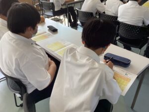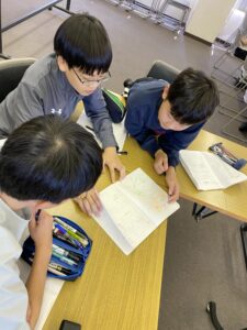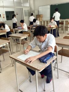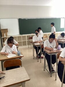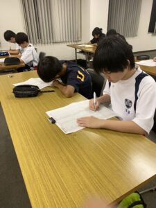 中学1年生は先輩の学習意欲・姿勢に圧倒されながらもなんとか喰らいついています。