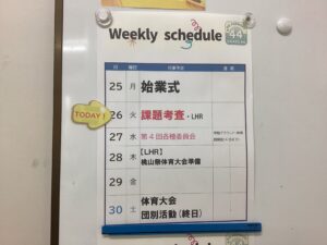 桃山祭、体育大会から1週間以上経ちました。お祭り気分も抜けてきていて、いい感じです。学力推移調査や中間考査に向けて勉強ムードを高めているようです。