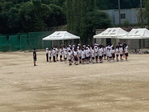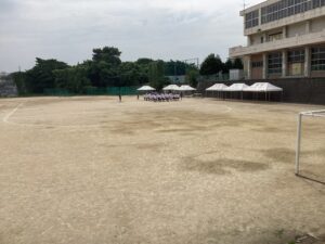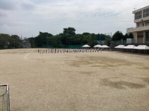 グランドで集合と行進などを練習していました。