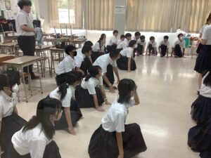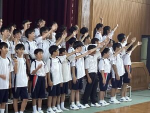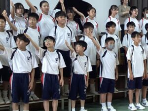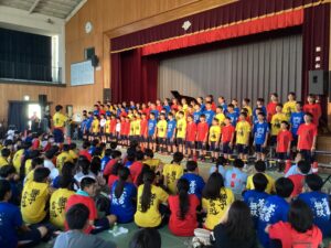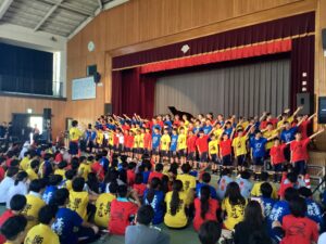 今日は桃山祭や体育祭に向けていろんなことを練習しました。昼休みには団ごとにパフォーマンスの練習をし、7限目には体育館で歌の練習しました。