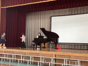 歌も可愛い振り付けとともに歌ってました。一生懸命歌ってましたが、体育館という広い空間に歌を届けるにはまだまだ声量が足りないので、もう少し頑張ってほしいところです。