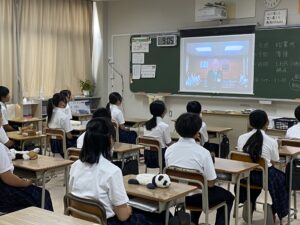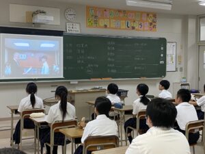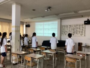 始業式は、熱中症対策のためオンライン映像を用いて教室で実施されました。生徒たちは緊張感をもって校長先生の話に耳を傾け、表彰者に拍手を送っていました。