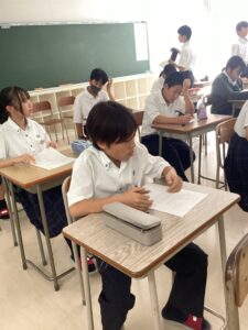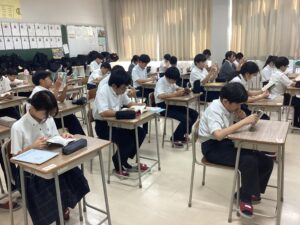 昼休みは英語の再テストチャレンジ「カエレマテン」に取り組む生徒や教室で学習する生徒も見受けられました。