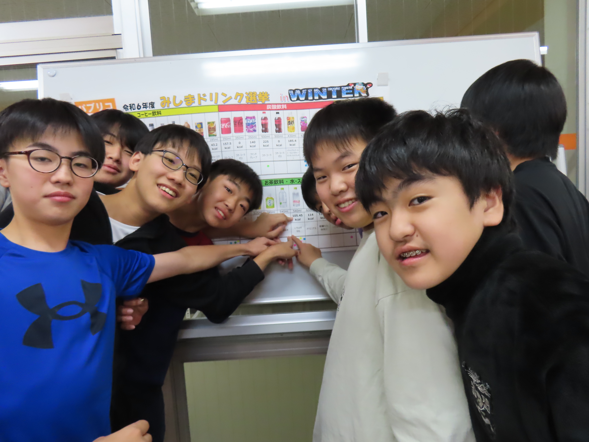 やってきました教育寮みしま名物『みしまドリンク総選挙2024冬』 コカ・コーラボトラーズジャパン様のご協力により、寮内の自動販売機の中身を自分たちの投票で決めることができます。寒い冬を乗り越えるためには「あったか~い」飲み物でホッと一息。そのため、投票する様子は真剣そのものです。
