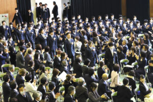 春の気配とともに岡山高校に卒業の季節がやってきました。3月2日(月)、卒業式を挙行し、39期88名の生徒が岡山高校を巣立ちました。来賓、保護者の皆様にはご臨席を賜り誠にありがとうございました。中学3年の時には新型コロナの感染が終息しておらず、卒業式の式典を実施できなかった39期生たちでしたが、無事にこの日を迎えることができました。今後の人生には、楽しいことだけでなく、いろいろな苦難があるかもしれませんが、岡山中学・岡山高校で培ってきた学びや経験を糧にして、自分の歩む道を切り開いていってください。卒業おめでとうございました