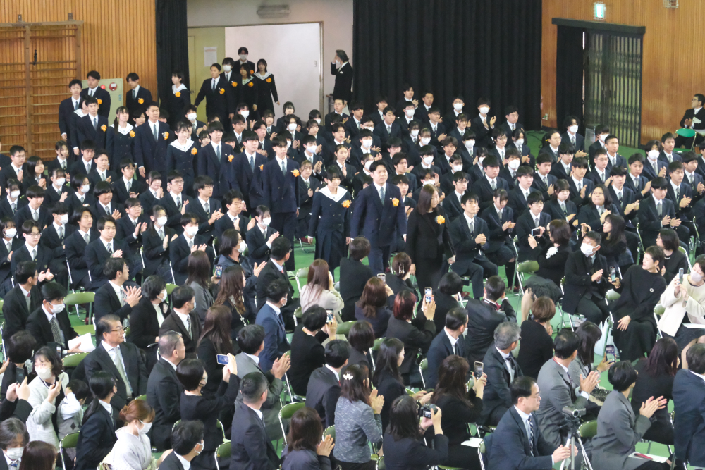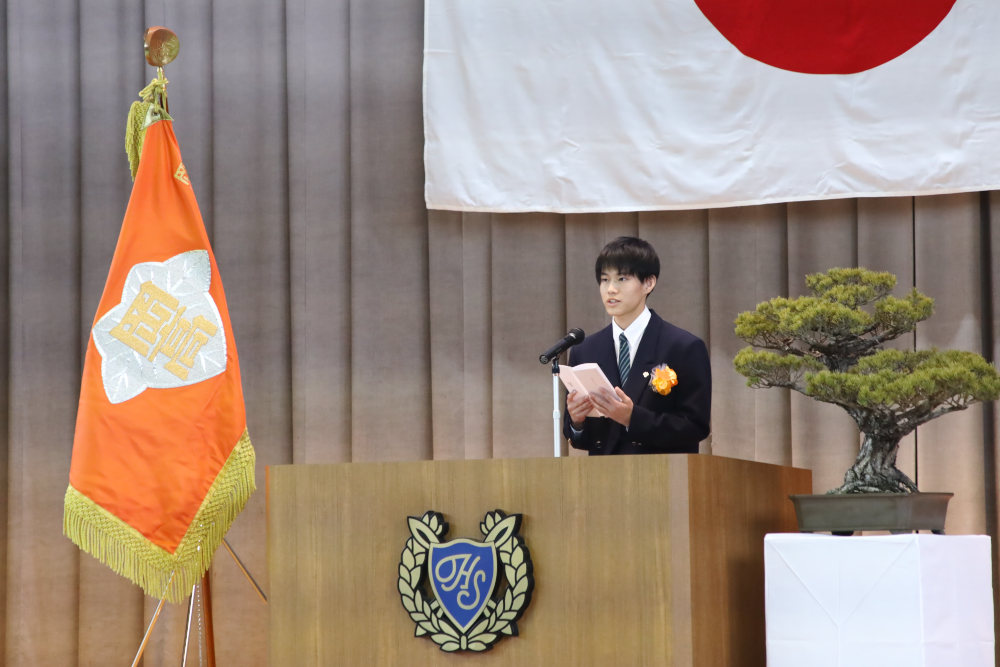 春の気配とともに岡山高校に卒業の季節がやってきました。本日3月2日(日)、卒業式を挙行し、第38期62名の生徒が岡山高校を巣立ちました。来賓、保護者の皆様にはご臨席を賜り誠にありがとうございました。高校入学の頃にはまだ新型コロナの感染が終息しておらず、学校生活でいくらか制限もあった38期生たちでしたが、無事にこの日を迎えることができました。今後の人生には、楽しいことだけでなく、いろいろな苦難があるかもしれませんが、岡山中学・岡山高校で培ってきた学びや経験を糧にして、「知性の砦を高く築き」、自分の歩む道を切り開いていってください。卒業おめでとうございました。
