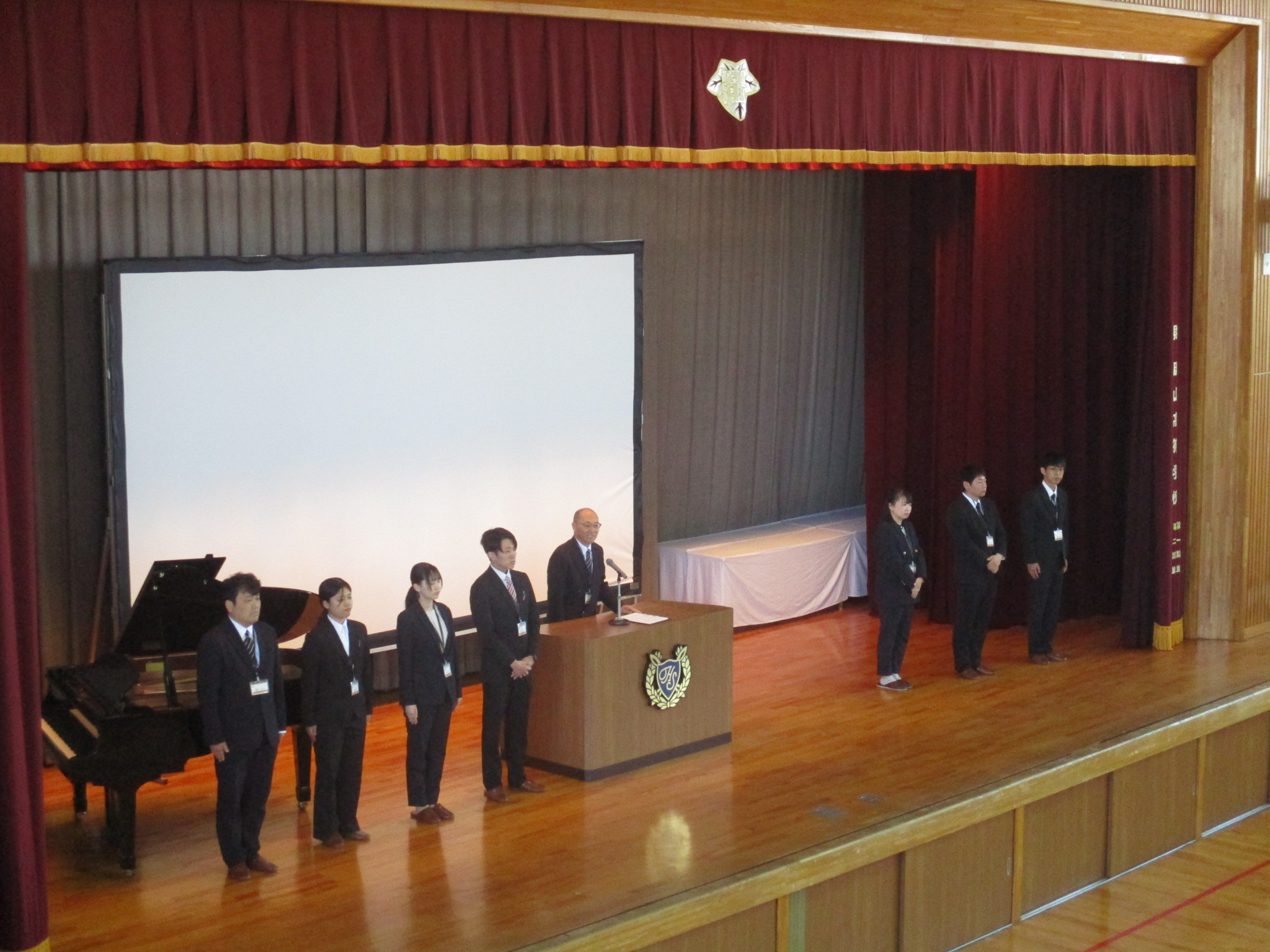 続いての新任式では岡中高の新たなメンバーとなった先生方を